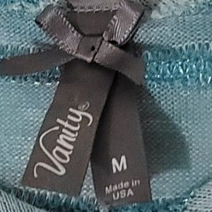 y2k Vanity striped v neck short sleeve tee shiny blue top m