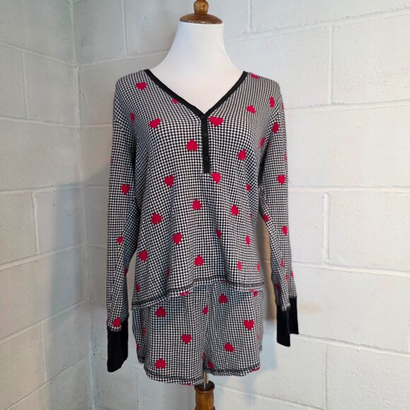 y2k Victoria's Secret Girly Femi Cottage Coquette Gingham & Hearts Thermal PJ Set