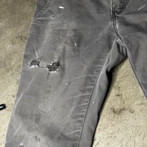 Description: y2k WORKWEAR DICKIES relaxed fit carpenter grey pants with paint and a smooth distressing, size 30x32, has a nice fade and some small scuffs and paints as showed :)