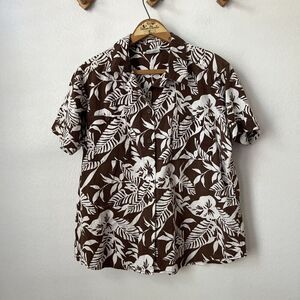 y2k White Stag short sleeve brown white tropical womens shirt button M