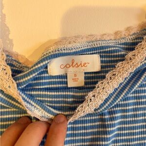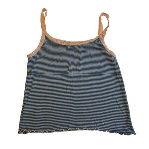 y2k blue and white striped lace trim tank top vintage summer coquette cottage