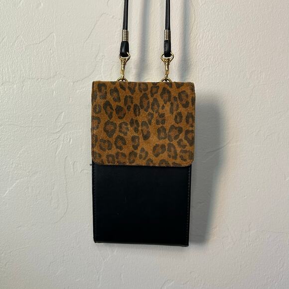 Vintage black and cheetah print crossbody wallet with a detachable strap