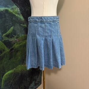 description: y2k-style denim pleated mini skirt featuring light blue wash, structured pleats, and button/zip closure at the side. easy to style for streetwear, preppy, or casual fits โ pairs perfectly with baby tees, sweaters, or tall boots.