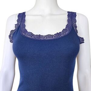 precious flattering slim-fit cami made of soft stretchy ribbed fabric w lace trim and lettuce hem. great d*pe for the cami elena worn in tvd 1x04 :)