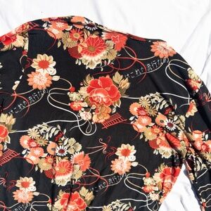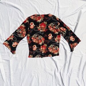 y2k flower print long sleeve blouse black and red JKLA size large petite