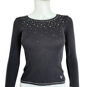 perfect fit stretchy baby tee with starry embellishments and embroidered heart
