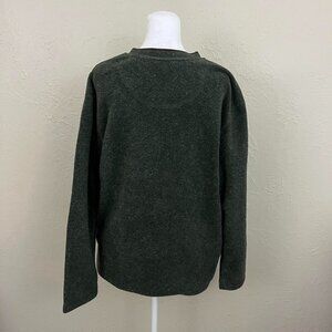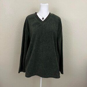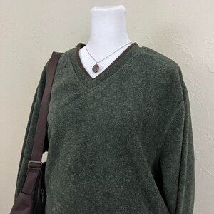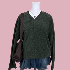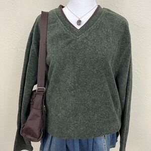 green fleece, oversized sweater, cozy knit, retro style, grunge, vintage fleece, faded tag, relaxed fit, casual layering, soft texture