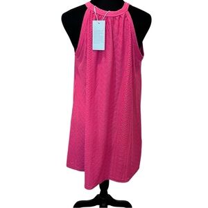 🧁y2k hot pink eyelet halter flowy dress beach cover up cocktail dinner date