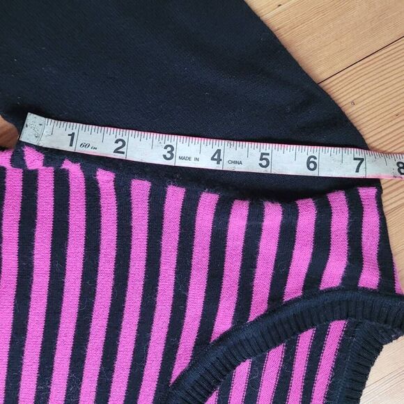 Y2K black & pink striped long sleeved crew neck sweater lightweight with ribbed detail on the cuff and he. in excellent pre owned condition with minimal wear and no signs of damage. d8