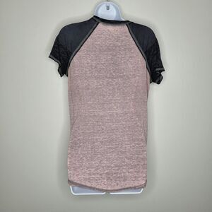 Maurices top: pink black, short sleeve, thin material, big front graphic, emo