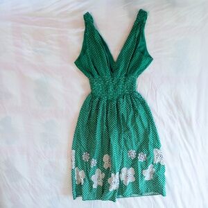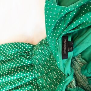 y2k polka dot midi dress green white flower print size large my michelle