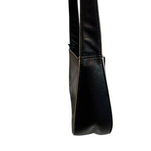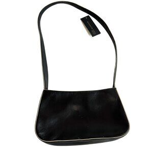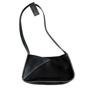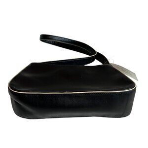 y2k Kenneth Cole purse, black faux leather with white trim, shoulder strap, small, zipper closure, measures approx: 8x4.5x2.25", new with tags but has small flaws on the exterior - see photos