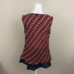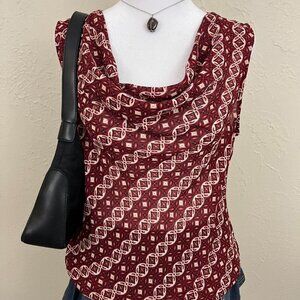 y2k red boho quirky downtown it girl semi sheer cowl neck top