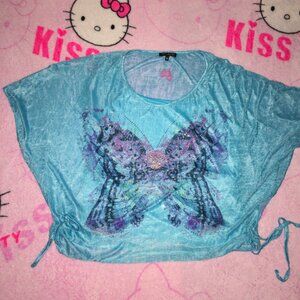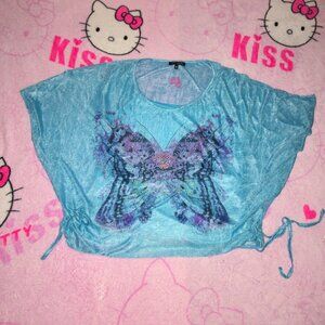 y2k rhinestone butterfly tie side layered blouse