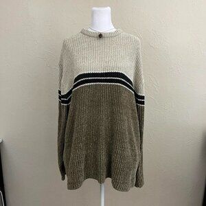 striped sweater, chenille knit, oversized, retro vibe, indie style, vintage sweater, knitted pullover, casual streetwear, woven texture, Y2K fashion