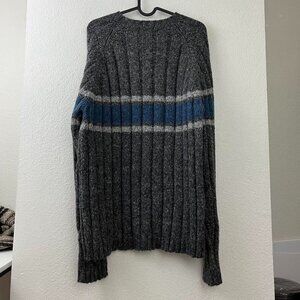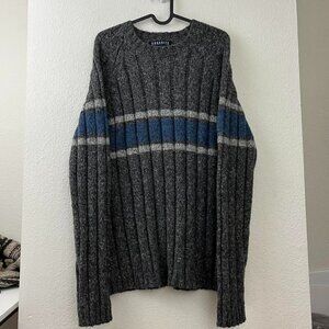 y2k, striped, indie, skate, grunge, chunky knit, wool sweater, oversized, distressed, pilling