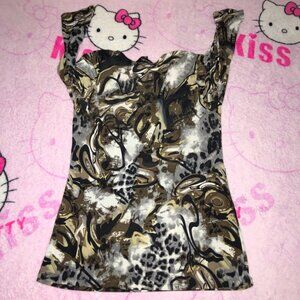 y2k trashy abstract printed square sweetheart neckline babydoll top