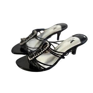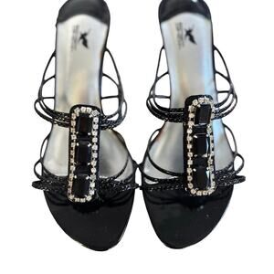 y2k vintage Bejeweled Black Strappy Rhinestone kitten heels sandals shiek size 7
