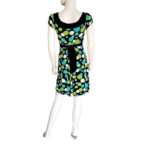 so so cute y2k vintage dress with colorful dot pattern, contrast stitching, and waist tie to cinch