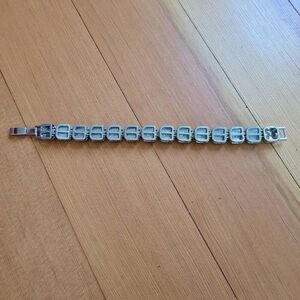 y2k pink & silver square gem bracelet, in excellent pre owned condition with no signs of wear or damage. I don't know what it's made out of.
