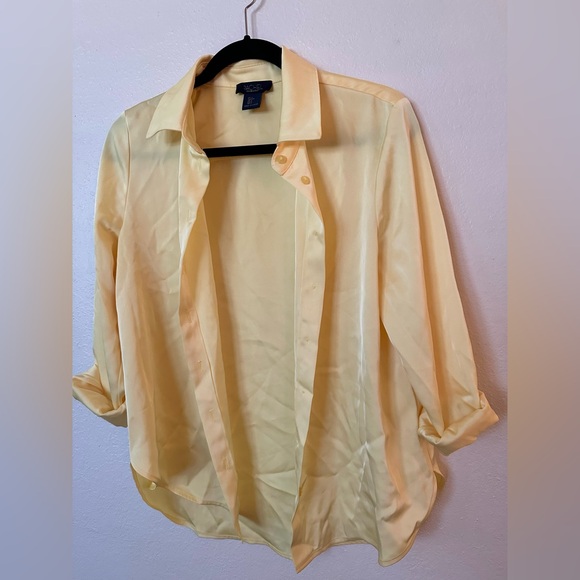 silky yellow button down shirt size small worn twice!!