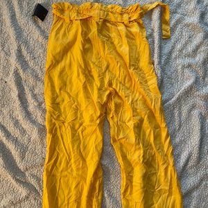 yellow flare pants with belt and pockets