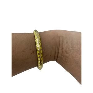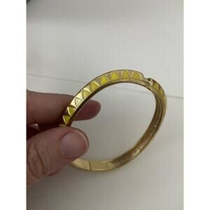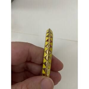 Lovely fun trendy retro 70s slim cuff cold tone with yellow enamel in good condition any flaws like tarnish are pictured great for going out parties holidays work school vacation boho hippie disco skater twee casual preppy rave casual cottage coastal grandmother Ravi Star Jewelry Co sustainable fashion