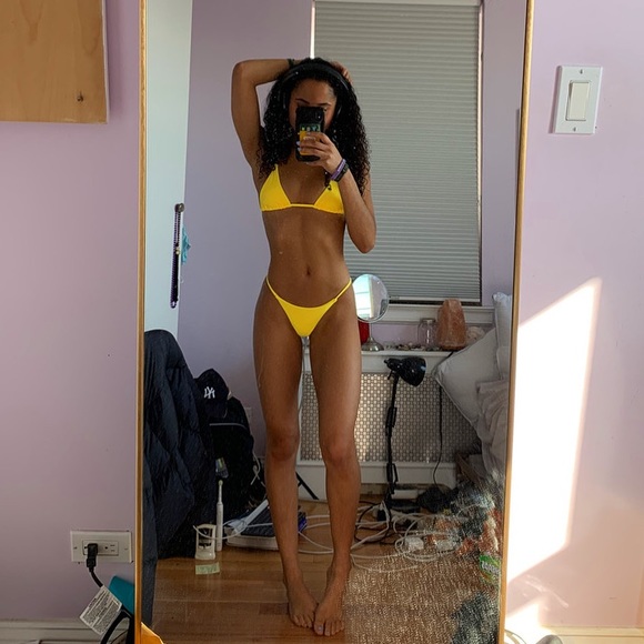 yellow string triangle bikini