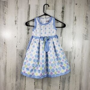 youngland toddler girls blue, white polka-dot Easter dress size 4T