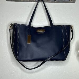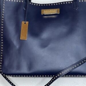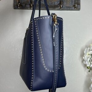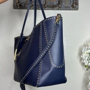 zac posen blue gold grommet large tote bag.