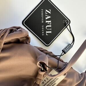 zaful brown bikini set size large textured push up top tie side bottoms nwt