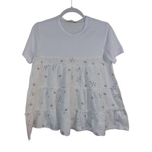zara LADIES SHORT SLEEVE EMBROIDERED TOP- S