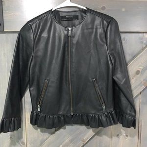 small flaws on rear left ruffle sleeve- not noticeable when worn- otherwise like new