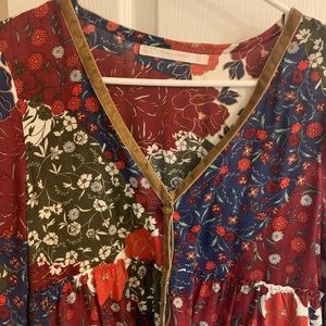 beautiful colors and pattern with green velvet lining detail somewhat peplum as shown in the picture