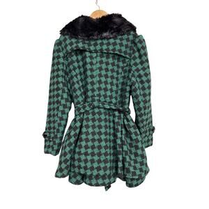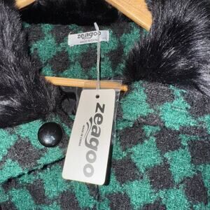 zeagoo Green Houndstooth Faux Fur Lapel Double-Breasted Long Coat Women’s 2XL