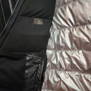 Content: shell coating 100% polyurethane; woven shell 100% polyester; knit shell 60% rayon/36% polyester/4% spandex; lining 90% polyester/10% spandex