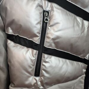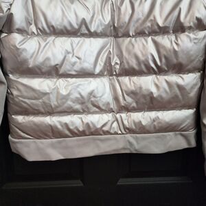 zuda Quilted Silver Pearlized Puffer Jacket with Hood