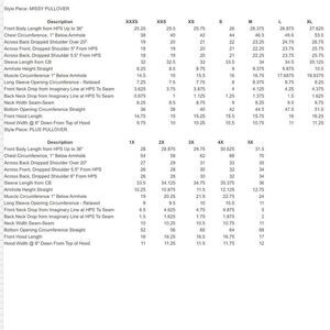 Length: missy length 25-1/2" to 27-5/8"; plus length 28" to 31-1/2"