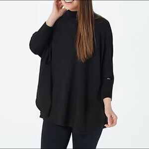 Features: UPF 50, mock neck, poncho style, dolman sleeves, half moon patch on center-back, wicking properties absorb and draw off moisture