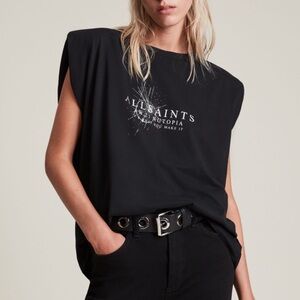AllSaints Black Logo Graphic Cotton T-Shirt Crew Neck Short Sleeve Women’s M