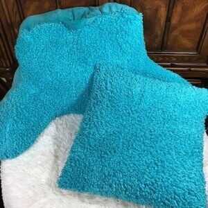 Aquamarine Turquoise Curly Faux Fur Back/Arm Rest & Square Throw Pillow Set