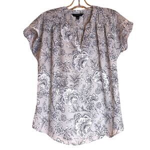 Women's Banana Republic Short Sleeve, V-Neck Beige, White Floral Top, Sm. EUC