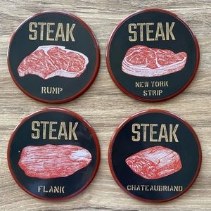 NEW Set of 4 Pfaltzgraff Novelty Steak Drink Bar 4” Beer Coasters Man Cave Meat
