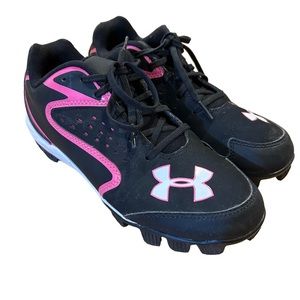 Under Armour Bound MLB Black Pink Cleats Baseball Soccer Lacrosse Shoes Sz 5.5 Y