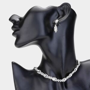 Silver Crystal Marquise Choker Necklace Chain Rhinestone Formal Jewelry Set