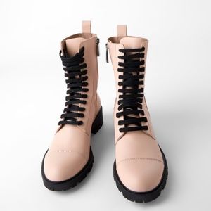 ZARA BLOGGERS FAV 100% LEATHER LACE UP PINK ANKLE BOOTS BRAND NEW WITH TAGS