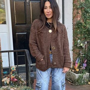 CHIC BEIGE CARDIGAN WITH GOLD BUTTON WITH FRONT POCKETS 🎉🎉🎉✨SZ M NEW