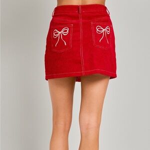 COACH Corner Zip Wristlet In Signature Canvas with Red Bow Print CZ440 NWT