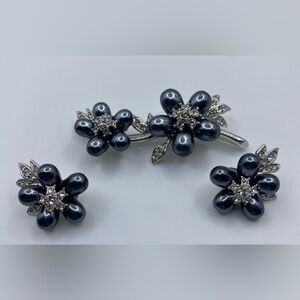 Nolan Miller Grey "Pearls in Bloom" Faux Pearl Crystals Floral Brooch & Earrings