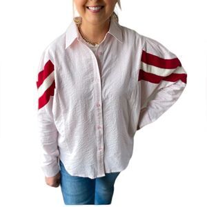 Shady Lady Women’s Button Down Striped Cotton Blend Top Shirt Size M